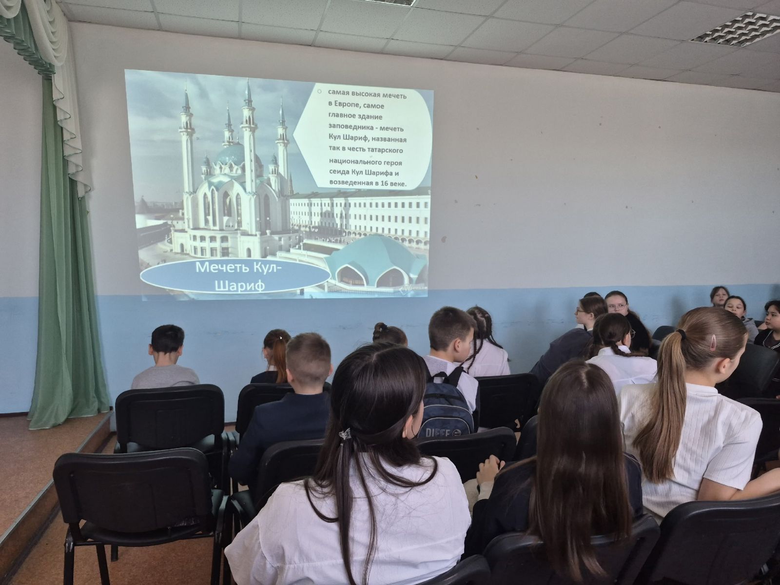 В школе прошёл единый урок, посвященный столице Республики Татарстан. В ходе занятия учащиеся узнали о том, как город стал важным центром исламской культуры и религии.