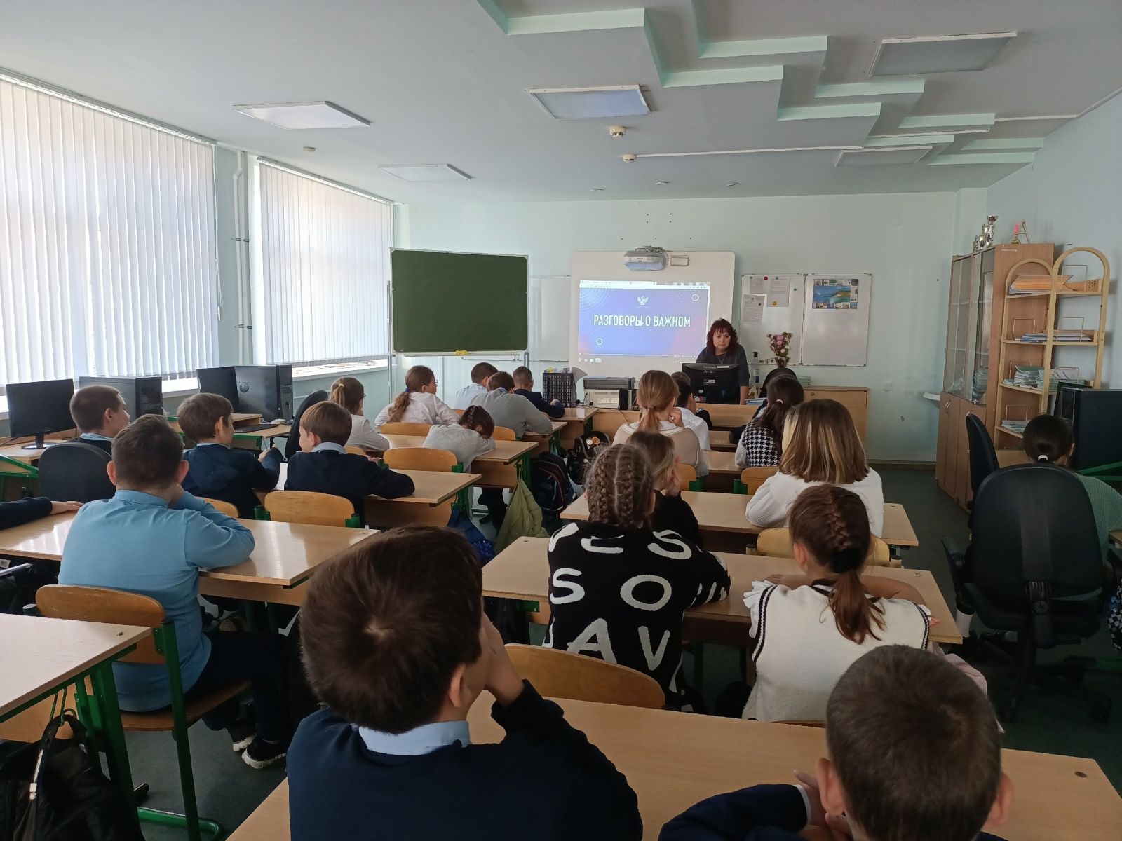 Экранның икенче ягында. Россиядә 115 ел кино шундый темага 16 октябрьдә мәктәптә уздырылган «Мөһим нәрсәләр турында сөйләшүләр» дәресен багышладылар. Дәрес укучыларны Ватан кинематографы тарихы белән таныштыру, анимация һәм киноиндустрия белән бәйле һөнәрләргә кызыксыну уяту, балаларның кинематограф һәм анимациянең Ватан мәдәнияте өлеше буларак кыйммәтлеген аңлауына ярдәм итү максатыннан үткәрелә.