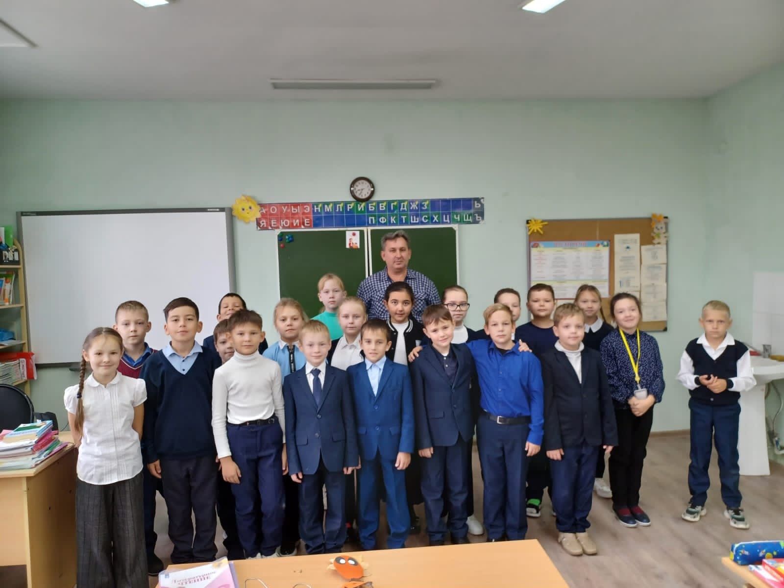 В гости к обучающимся 3Б (кл. руководитель Соколова Ю.Г.) приходил представитель Совета отцов класса Сабиров Э.Ш., который рассказал о профессиях военного и учителя. Эмиль Шагитович служил в военных войсках в Узбекистане, где подготавливали молодых бойцов для военной службы. Каждый день проходила тренировка на различных объектах. Эмиль Шагитович акцентировал внимание на важность утренней зарядки, для того, чтобы быть бодрым, выносливым, сильным. "В армии у нас, как в вашем классе все были дружными, помогали друг другу, были едины как семья", - вспоминал гость. В данное время Эмиль Шагитович работает в кадетской школе, где преподаёт технологию и ведёт кружок "Барабанщики". В завершении встречи ребятам показали фильм про военную службу, где молодые бойцы проходили тренировку. После просмотра дети задавали интересующие вопросы.