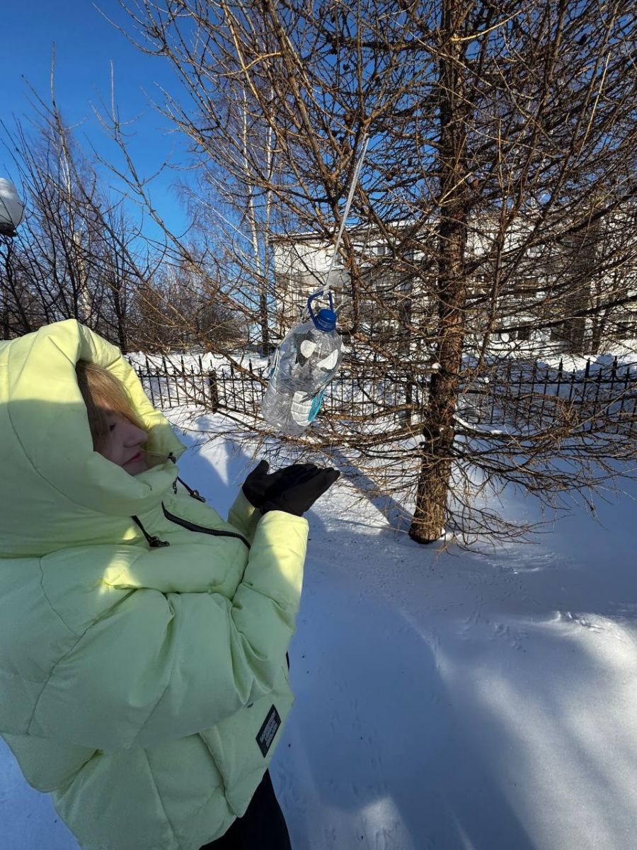 Хайруллина Илина, Сергеева Алина, Касьянова Милана и президент нашей школы Гайнутдинова Аделина присоединились к этой акции. Они повесили в парке им.Туфана Миннуллина кормушки, изготовленные ребятами в рамках конкурса "Птичья столовая", и положили корм.