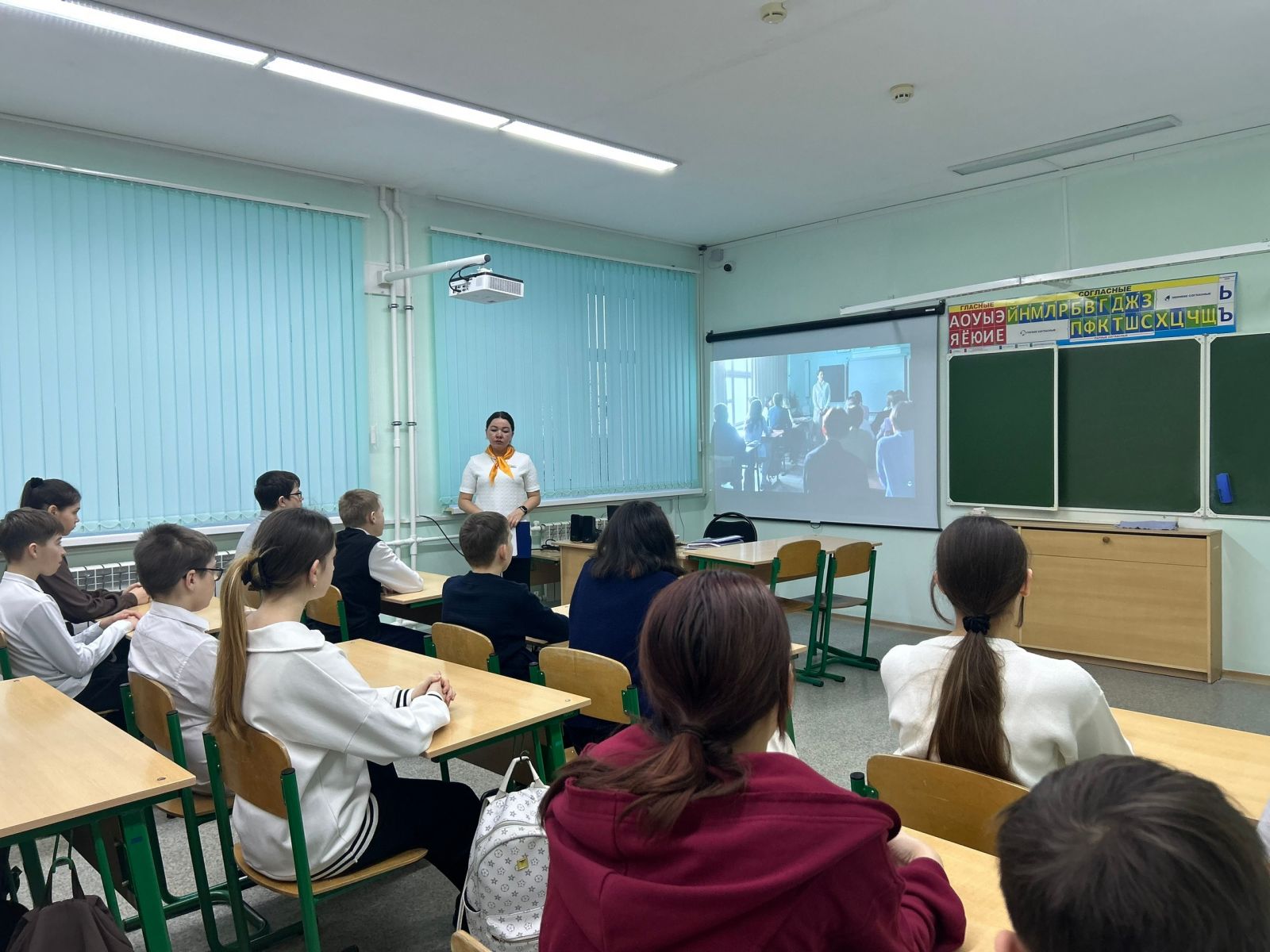 «Россия мәктәпләрендә Киноуроклар» проектында катнашу кысаларында мәктәп укучылары тәрбия буенча директор киңәшчесе Гыймадиева Г.К. белән «мәктәп ботаннары» һәм «Тере шәһәр»кыска метражлы фильмнарын карадылар һәм фикер алыштылар.
