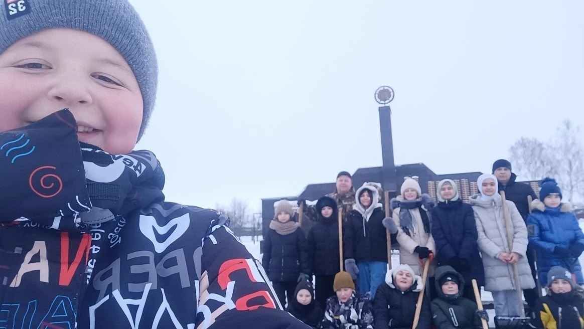 Традиционно учащиеся Камскоустьинской школы прибираются на территории мемориала "Парк Победы". В дни зимних каникул дежурство выпало учащимся 6Б класса. Вместе с классным руководителем Хайруллиной Р.Ш. и папами ребята очистили памятник от снега.