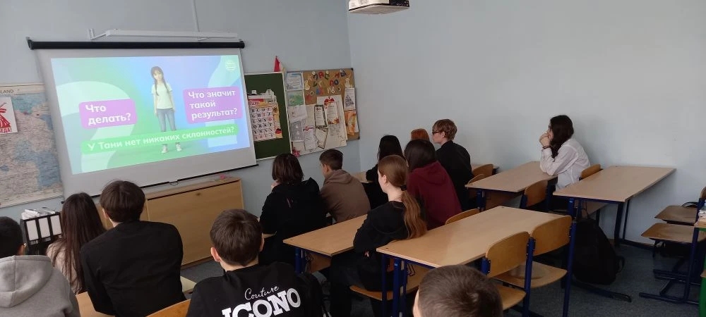Дәрестә укучылар «Киләчәккә Билет»порталында профориентацион диагностика узуның үзенчәлекләре, алгоритмы һәм сроклары турында белделәр. Укучыларга «минем мәнфәгатьләрем» һәм «минем профиль»диагностикасы узарга тәкъдим иттеләр. Видеороликларны карау һәм фикер алышу, укытучылар җитәкчелегендә дәрес материаллары белән эшләү, мөстәкыйль эшләү балаларга һөнәри эшчәнлек сайлауда, гомуми белем бирүнең, өстәмә белем бирүнең профильлелеген сайлауда һөнәри мәнфәгатьләрнең зур роль уйнавын аңларга ярдәм итте.