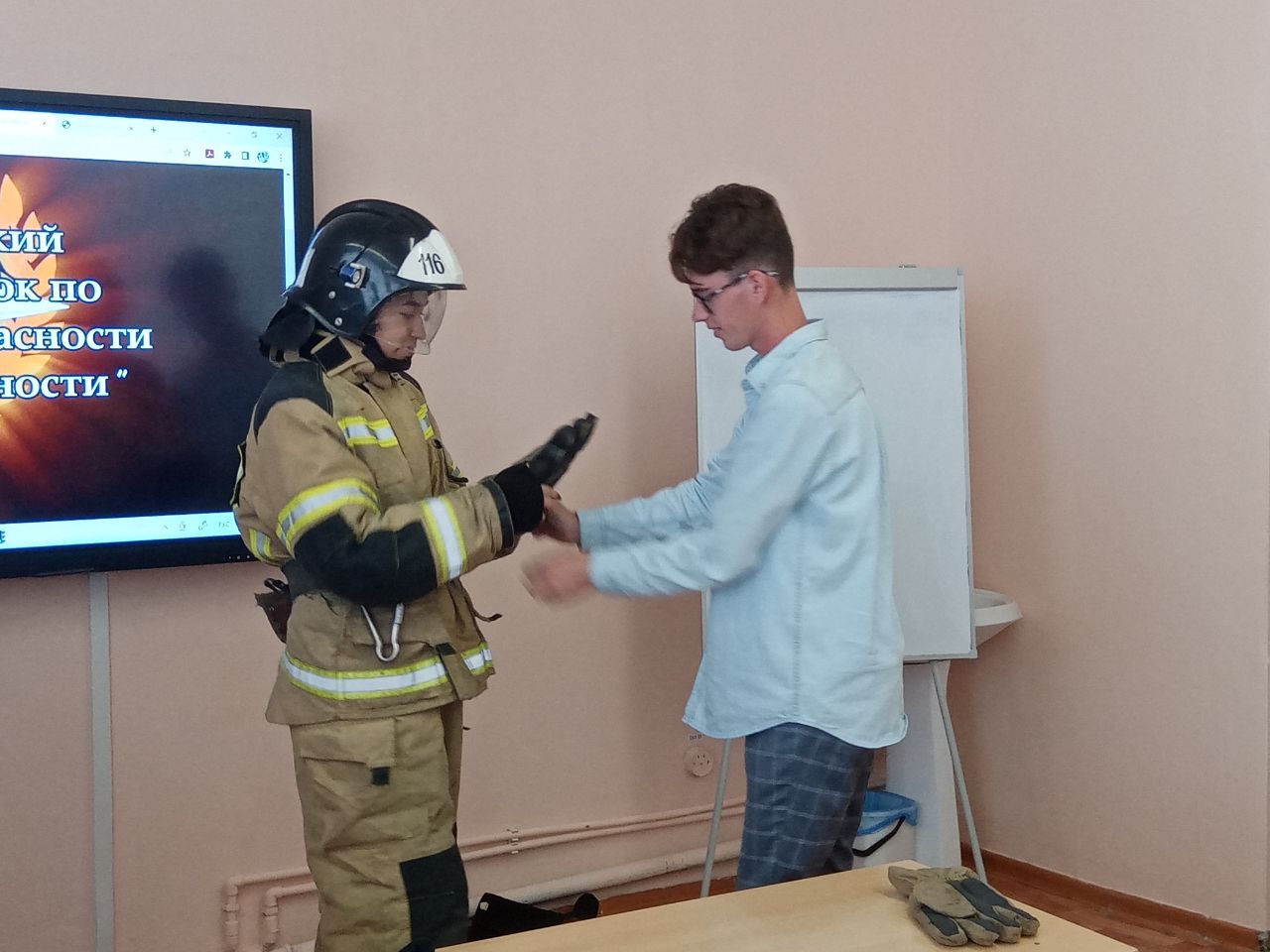 Всероссийский открытый урок ОБЖ прошёл 8 сентября в Камскоустьинской школе. В рамках данного урока школу посетили начальник караула Тарасов Ф. и пожарный Зиннуров И. 116й пожарно-спасательной части 8 ПСО ГПС ГУ МЧС России по Республике Татарстан. Страшеклассникам рассказали об истории пожарной охраны и работе пожарных, о том, как тушат пожары в наше время. Так же ребята померили боевую одежду пожарного. В конце мероприятия ребятам напомнили простые правила пожарной безопасности и телефоны вызова пожарной охраны.