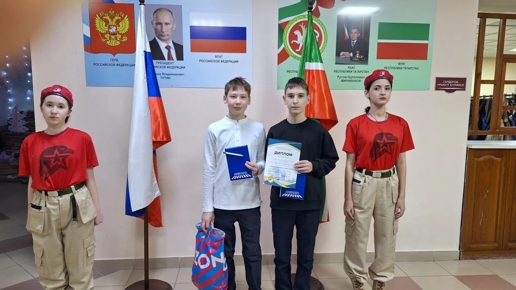 22 декабря прошла еженедельная линейка с исполнением гимнов РФ и РТ. Участниками стали обучающиеся 8-11 классов. Почетное право поднять государственные флаги Российской Федерации и Республики Татарстан предоставили юнармейцам Гурьяновой Милене и Тухфатуллиной Адиле. Прошло ознакомление с государственными значимыми датами и событиями, которые наша страна будет отмечать на предстоящей учебной неделе. Учителями-предметники подвели итоги Недели математики вручив сертификаты и дипломы самым активным участникам. Вручены дипломы и благодарственные грамоты за участие в конкурсах и благотворительных акциях.