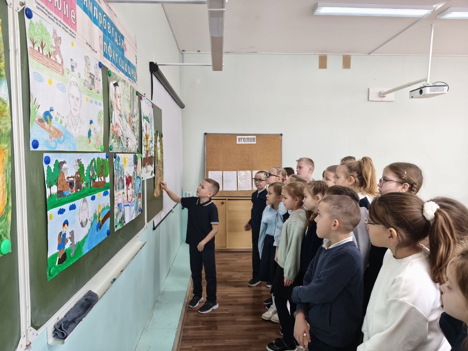 Габдулла Тукай әсәрләре һәм иҗаты буенча Бөтенроссия рәсем конкурсының мәктәп этабы кысаларында 2 класс бөркетләре белән әңгәмә һәм конкурска тәкъдим ителгән эшләрне карау үткәрелде.