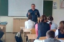 Открытый урок, посвященный Году культуры безопасности, для учащихся 7-х классов провел инспектор ГИМС МЧС Н.Г.Нуриев.