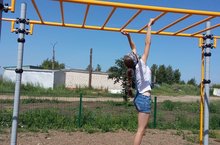 Сегодня в День спорта ребята тренировались на спортивных снарядах, развивая в себе силу и ловкость.