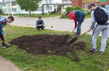 Сделать ул. Комарова красивее вышли учащиеся Камскоустьинской школы. Они подготовили клумбы и посадили в них цветы., которые все лето будут радовать своим цветением жителей поселка.