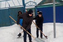 "Ничек яшисең ветеран?" акциясе кысаларында 7 нче сыйныф укучылары Р.К.Рафикова белән берлектә Флера апа Рахматуллинаның ишек алдын кардан чистартты.