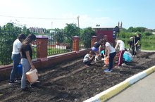 Бүген 5-8,10 сыйныф укучылары мәктәп янына чәчәк расадалары утыртты.
