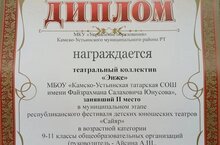 Театральный коллектив "Энҗе" занял 2 место. Руководитель Айсина А. Ш.