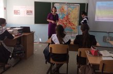 Бүген рус теле һәм әдәбияты укытучысы Каюмова Л.Х. 7 нче сыйныф укучылары белән сугыш җырлары тарихы турында сөйләште.