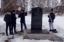 Бүген 8 нче сыйныф укучылары ТИН укытучысы Гарифуллин И.Ш. белән бергә әфганчыларга куелган һәйкәл янын кардан чистарттылар.
