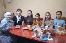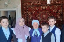 Бүген 6 нчы сыйныф укучылары Галиева Хәдия апаның хәлен белеп, якынлашып килүче Җиңү көне белән котлап кайтты.