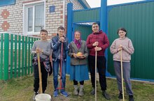 Бүген 8 нче сыйныф укучылары Зиннаитуллин Р.Р. җитәкчелегендә Гайнетдинова Гөлкәбирә апаның хәлен белеп,аңа ярдәм итеп кайтты.