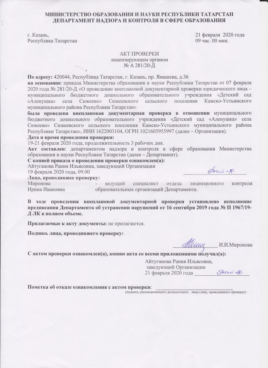 | Короткое название: | МБДОУ "Детский сад "Аленушка" с.Сюкеево" Камско-Устьинского муниципального района РТ |