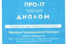 учителя информатики Пескова А.Г. , победителя дистанционного этапа Всероссийской олимпиады учителей информатики