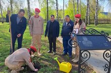 Юнармейцы школы посадили дерево памяти у стеллы героя.