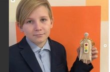 Нугуманов Артур, ученик 7 класса участвует в конкурсе поделок по безопасности дорожного движения.