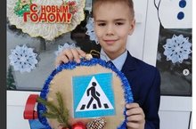 Артемьев Константин, ученик 3 класса участвует в конкурсе поделок по безопасности дорожного движения. Номинация "Ёлочная игрушка".