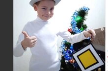 Рыбаков Илья, ученик 3 класса участвует в конкурсе поделок по безопасности дорожного движения. Номинация "Ёлочная игрушка".