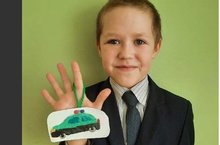 Кузовенин Артем, ученик 2 класса участвует в конкурсе поделок по безопасности дорожного движения,