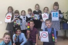 Флешмоб ЮИДовцев с учащимися начальной школы в рамках Всемирного дня памяти жертв ДТП
