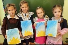 Сегодня на внеурочном заняти "Радуга творчества" ребята создали очередной шедевр. Из легких мазков всего тремя цветами гуаши получилась картина "Солнце в небе".