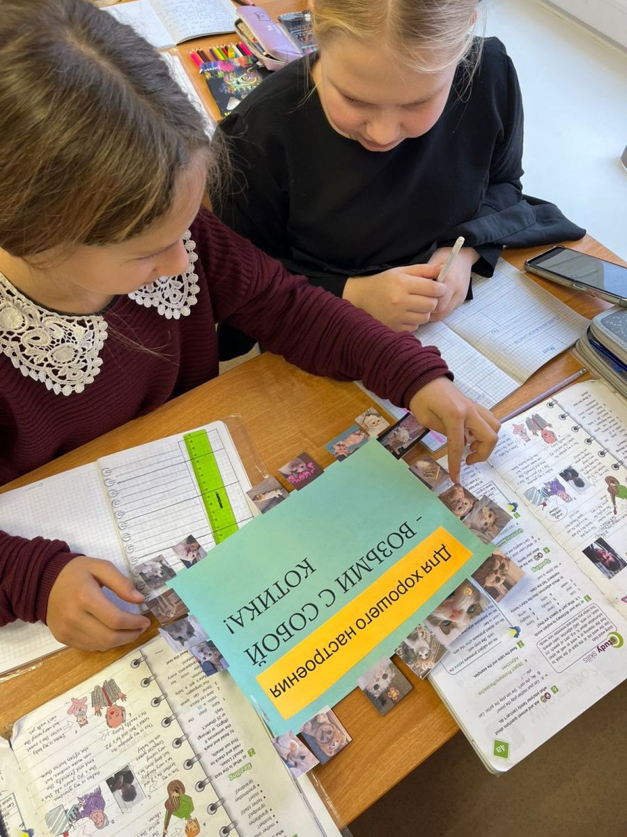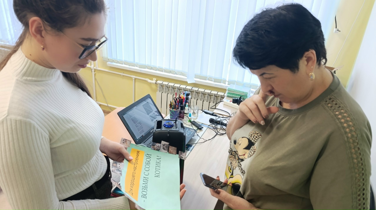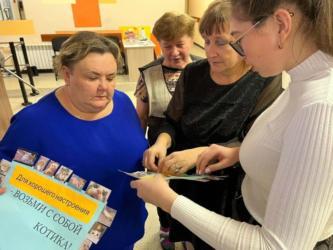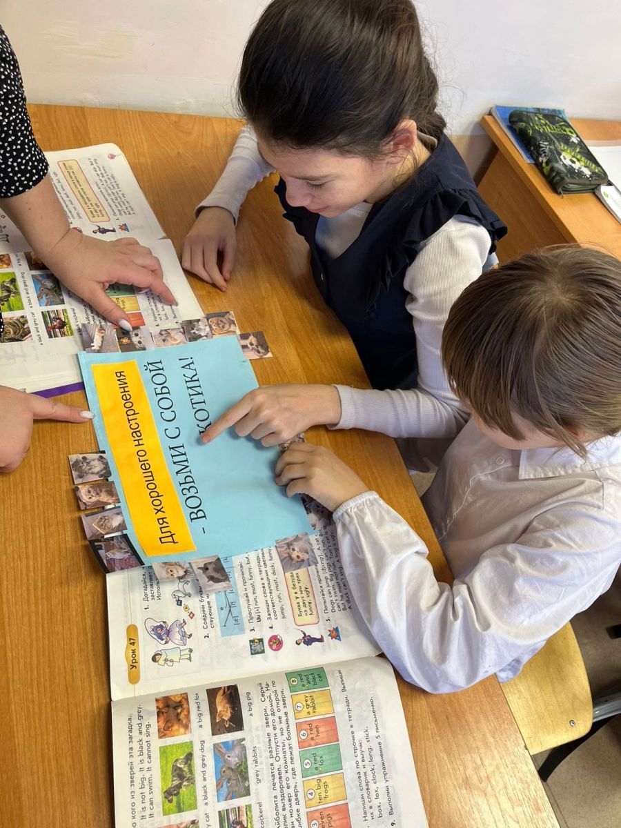 Педагог организатор вместе с советником приготовила листы с наклейками котиков, где было в центре листа написано: "Хорошее настроение- Возьми с собой котика». И тогда на процентов человек становился счастливее.