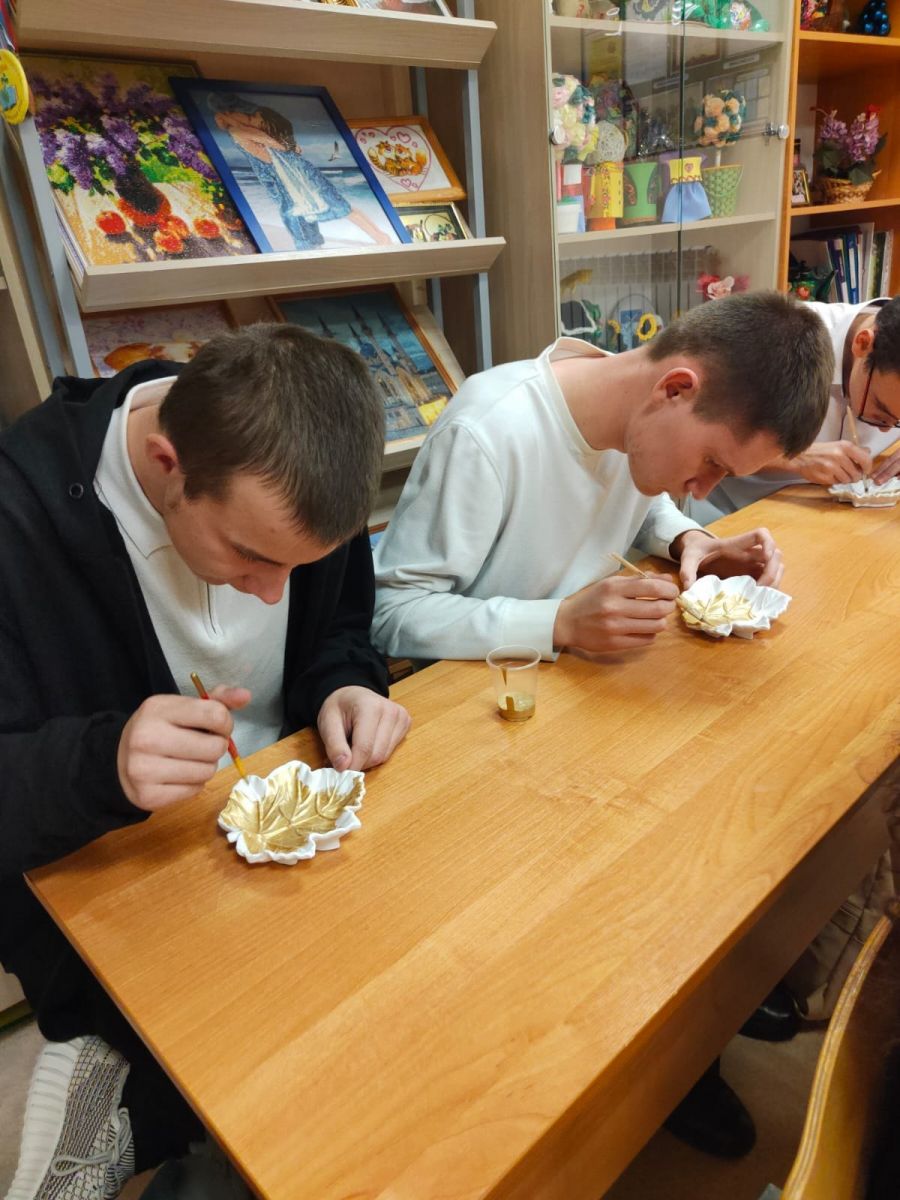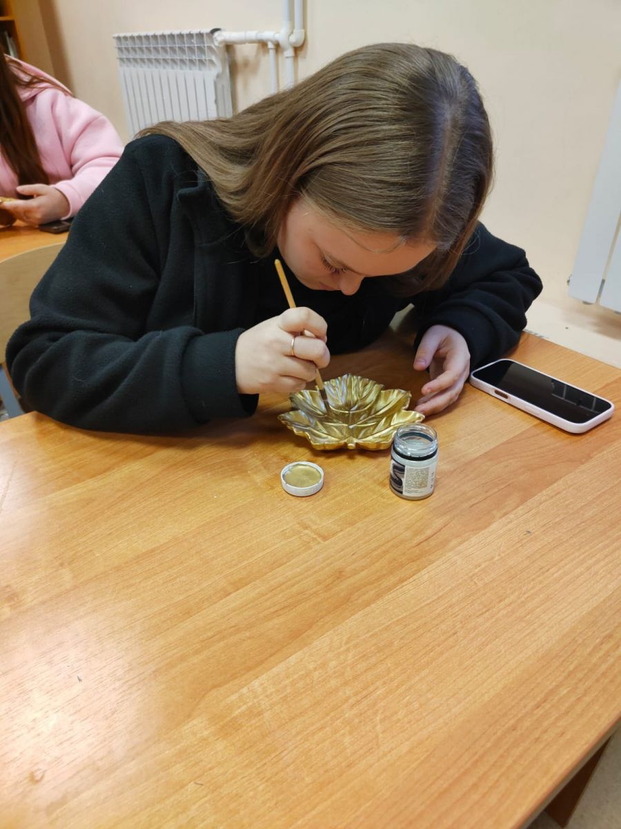 Под чутким руководством мастера Лилии Гумеровой ребята создали невероятно трогательные и красивые тарелочки «Кленовый лист». Каждый вложил в свою работу частичку души, ведь этот хрупкий, но такой прекрасный сувенир станет подарком самому дорогому человеку — маме — в преддверии Дня матери.