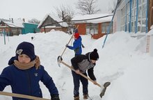 Полным ходом идёт работа тимуровцев школы.Ученики 6 класса вместе с классным руководителем Талиповой З.Г.в сю неделю ребята ходят к пожилым, вдовам помочь в уборке снега. Для ребят это как игра. Ловко кидают снег, расчищают дорожки. Взрослые довольны, а ребятам в радость, что хотя бы немного, но помогли.