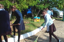 В рамках Всероссийского экологического субботника "Зелёная Россия" в школе прошёл субботник по уборке пришкольного участка. Субботник прошёл под девизом "Мы за чистую планету!". Ребята с энтузиазмом взялись за работу. Почистили газоны, прибрали инвентарь, чтобы весной приняться за благоустройсто территории, подготовили участок под посадку чеснока.