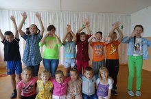 Как известно, смех продлевает жизнь. День решили начать со смешных спортивных конкурсов, а приняли участие только мальчики. Затем прошёл слёт хохотушек и хохотунов, шуточные песни, стихи, подняли всем настроение. Настал черёд и для дружеских шаржей. Забавно и весело прошло. В гости пришли клоуны « Бим и Бом» рассказали и показали, как веселиться и поднять себе настроение.