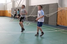 Сегодня в спортзале мы играли в игру « Пионербол». Разучили новую игру