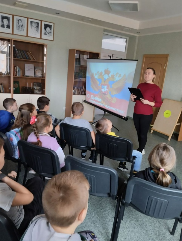 Советник директора по воспитанию Цыганова Татьяна познакомила ребят с историей возникновения праздника, рассказала, что именно 4 ноября 1612 года два русских героя - Кузьма Минин и Дмитрий Пожарский - изгнали из Московского Кремля польских захватчиков, тем самым положив конец тридцатилетнему периоду, который историки называют Смутным временем.