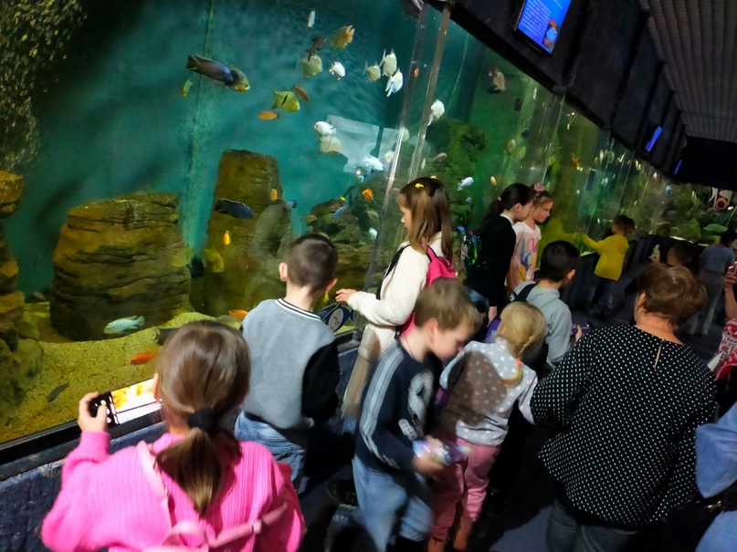В чудесном мире «Океанариума» побывали учащиеся нашей школы во время осенних каникул. Они совершили увлекательное путешествие в мир морей и рек. Ребята с интересом слушали рассказ экскурсовода, узнали о жизни и повадках обитателей водных глубин. Они узнали много нового и насладились красотой чудесного мира природы.