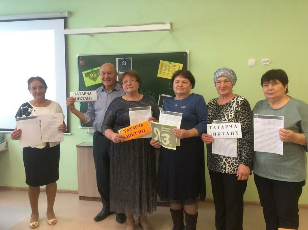 Әхмәдуллина Хәлимә үзенең оныгы - Динә, Гыйлмиева Надия дә 8 нче сыйныфта укучы оныгы - Алисә белән бик теләп катнашалар. Тимергалиева Алия башлангыч сыйныфта укыганда ук катнаша башлаган иде инде. Парта артына утырып, диктант язу дулкынландыра. Әмма үзеңнең белемеңне тикшереп карау теләге җиңеп чыга. Быел безнең сафларга Гарифуллин Динур Хәлилулла улы, Мөслимә Фәhим кызы да кушылдылар. Погорнова Мөршидә апа ике ел рәттән диктантны радиодан тыңлап яза. Кызганыч, бик теләсәләр дә берничә бик актив кешебез килә алмады. Икенче елга да илләребез тыныч булып, тагын шулай күңелле итеп очрашырга, диктантны "5" легә язарга насыйп булсын!