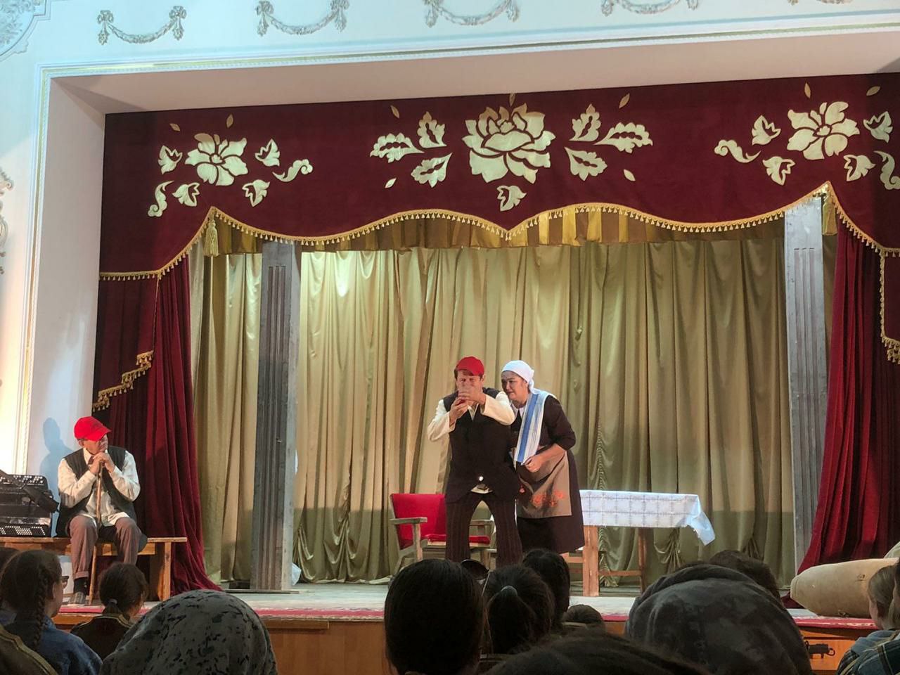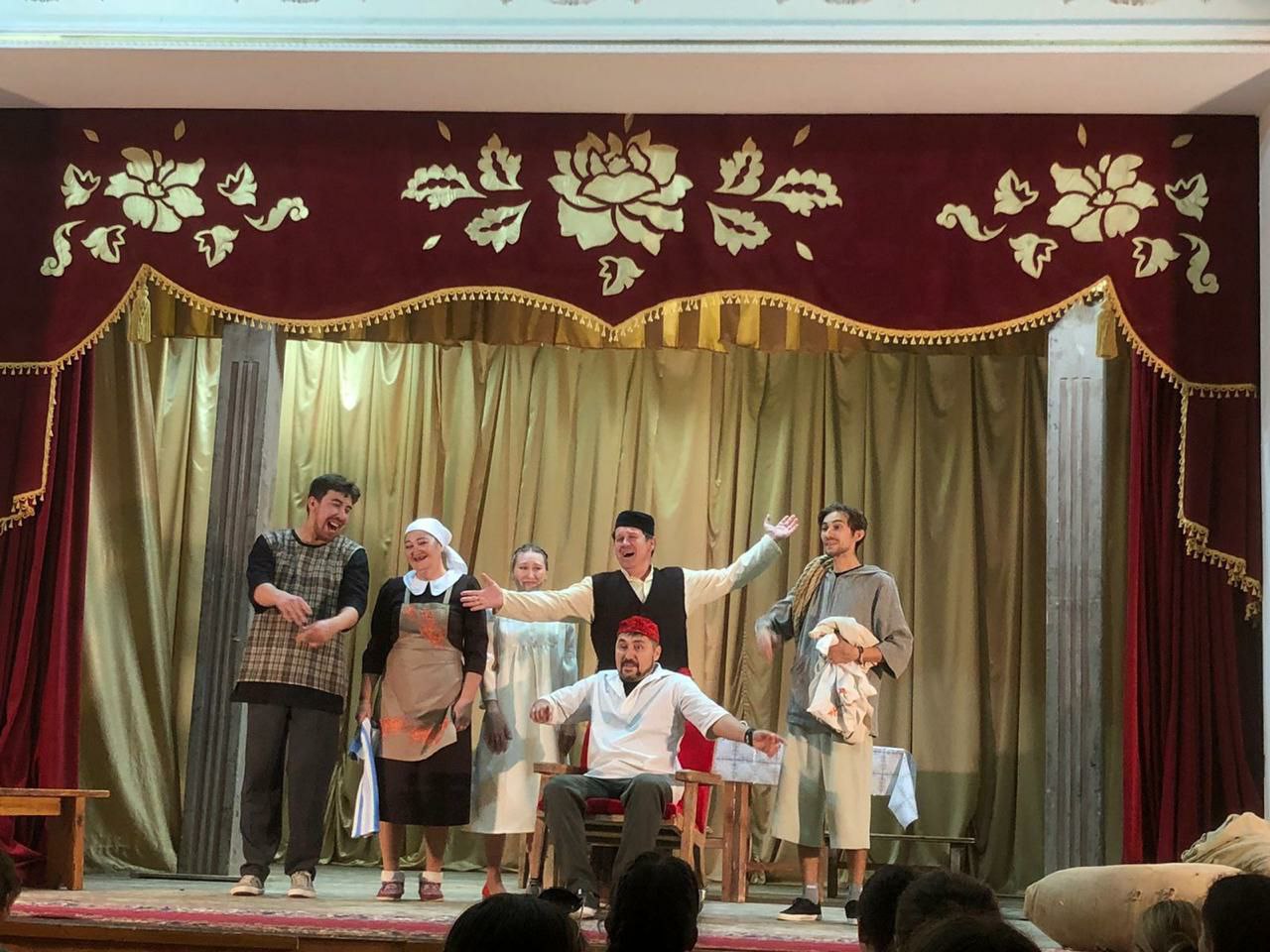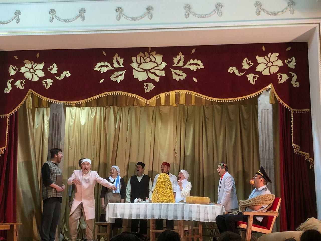 13 сентября учащиеся 9-11 классов Рудницкой школы с удовольствием отдохнули, посмотрев спектакль Татарского государственного театра драмы и комедии им. к.Тинчурина "Похищение жениха" по пьесе Салавата Юзеева. Юные зрители смеялись вместе с артистами на сцене, играли вместе с ними, долго аплодировали в знак благодарности.Рудник урта мәктәбенең 9-11 нче сыйныф укучылары К. Тинчурин исемендәге Татар дәуләт драма hәм комедия театрының Салават Юзеев әсәре буенча куелган "Кияу урлау" спектаклен карап, рәхәтләнеп ял итеп, куңел ачып кайтты. Яшь тамашачы сәхнәдәге артистлар белән көлде, алар белән бергә уйнады, рәхмәт йөзеннән бик озак кул чапты.