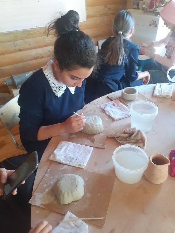 Работа с глиной- захватывающее, очень интересное творческое занятие, которое посетили учащиеся школы. В процессе мастер - класса " Гончарное искусство" учащиеся познакомились с формовкой глины при помощи гончарного круга, с правилами сушки изделий, подготовке к обжигу.Ребята учились затирать и замывать готовые работы.Процесс очень увлекательный , даже не заметили, как прошел этот мастер - класс. Все ребята были очень увлечены, серьезно подошли к процессу, и результатом остались очень довольны