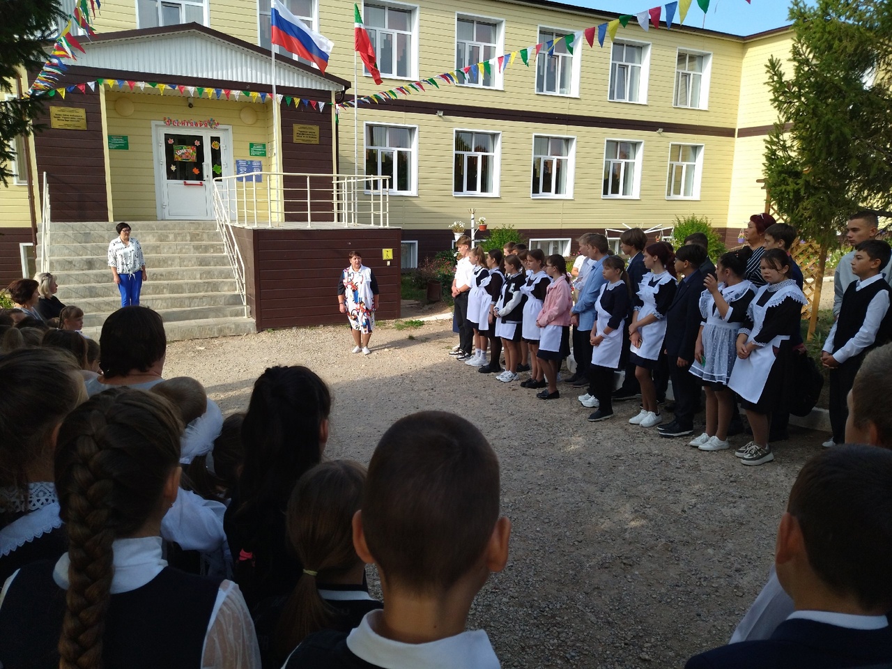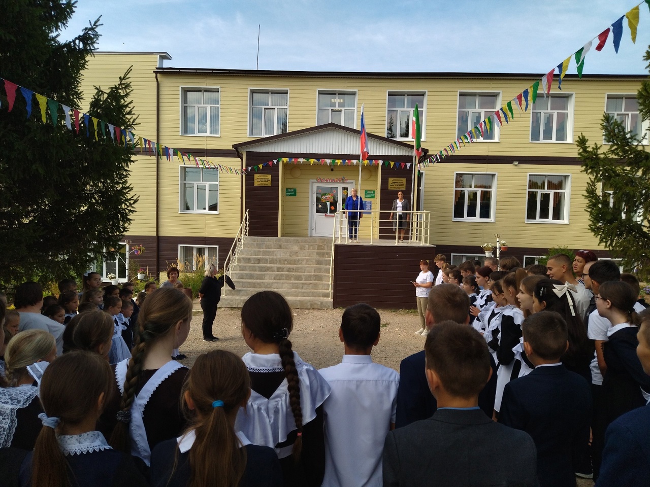 4 сентября в нашей школе, как и во всех школах России, началась новая рабочая неделя традиционно с церемонии поднятия флага Российской Федерации и Республики Татарстан и исполнения гимнов РФ и РТ.