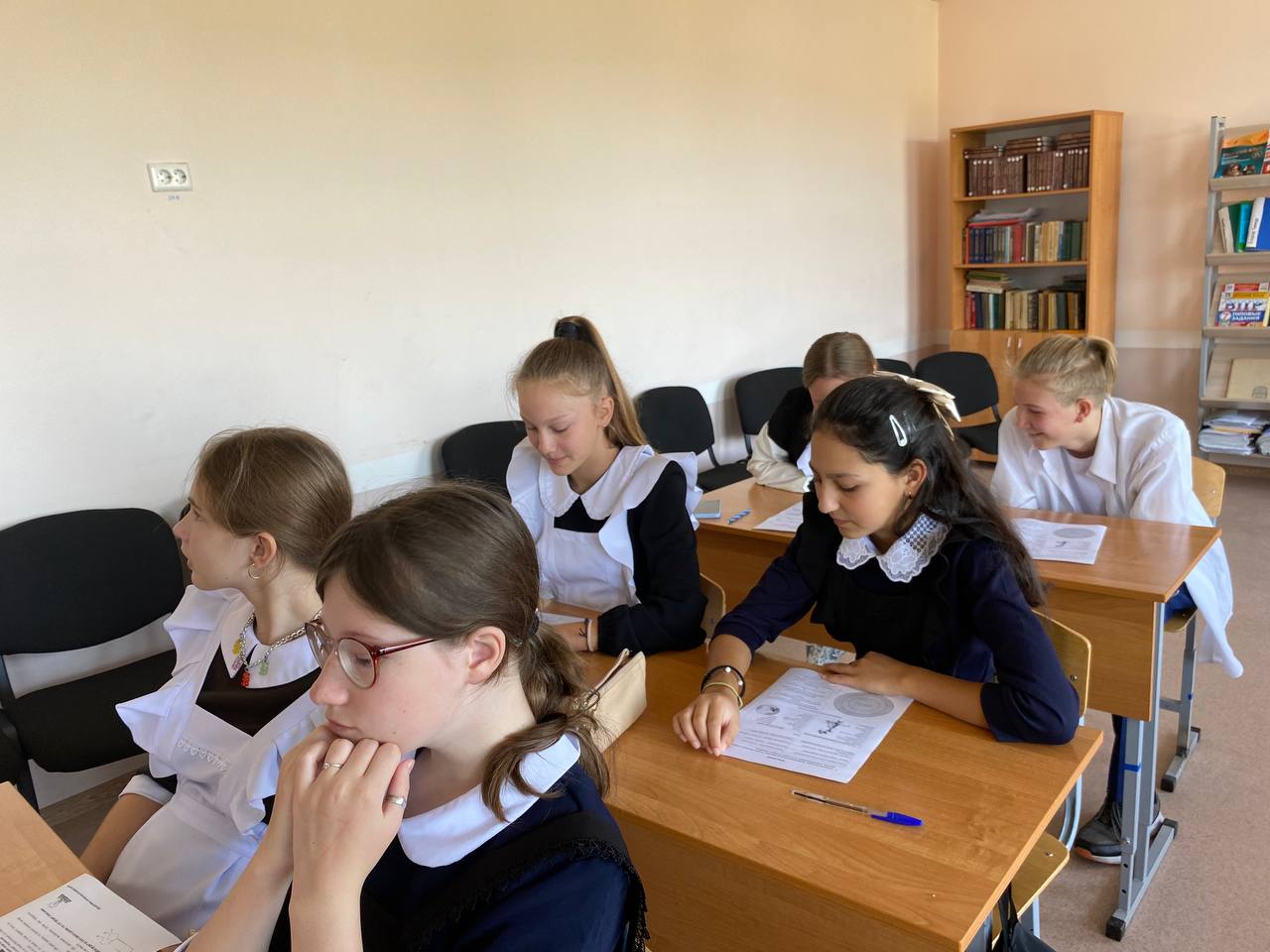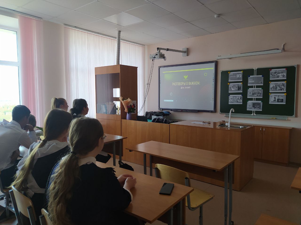 С учащимися 8-9 классов состоялся очередной «Разговор о важном». Он был посвящен Дню знаний. После вступительного слова учителя школьники просмотрели видеозапись встречи Президента РФ В.В.Путина со школьниками,затем включились в беседу о необходимости знаний в жизни человека,заполняли рабочие листы,обсудили видеоролик «Школа-это важно.Истории российских успешных людей»,выполнили интерактивное задание,в конце подвели итоги,определив возможности для получения знаний.