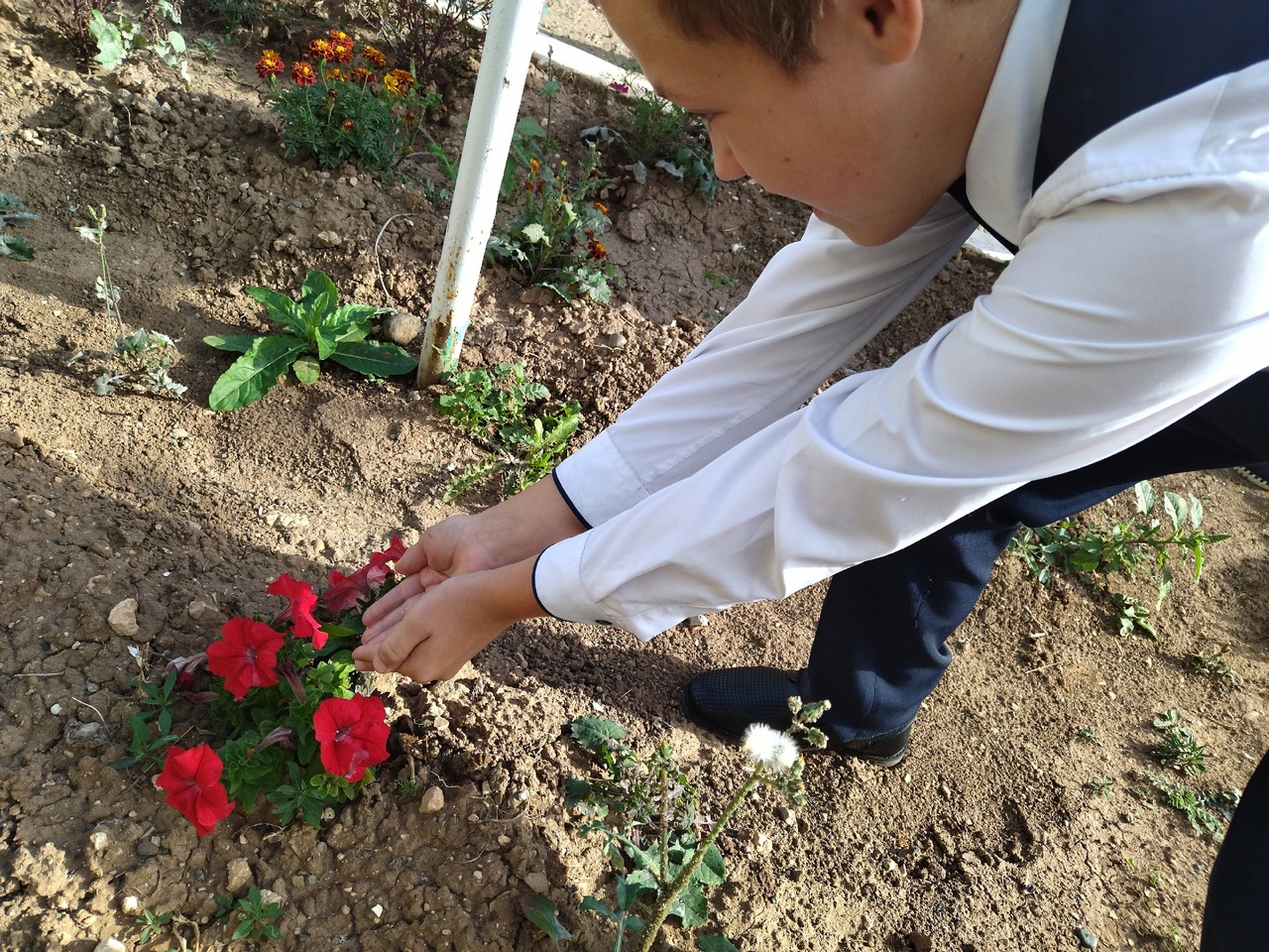Ребята «напоили» цветы, поделились водой с теми, кого уже нет с нами, с пожеланием светлой памяти всем безвинно погибшим