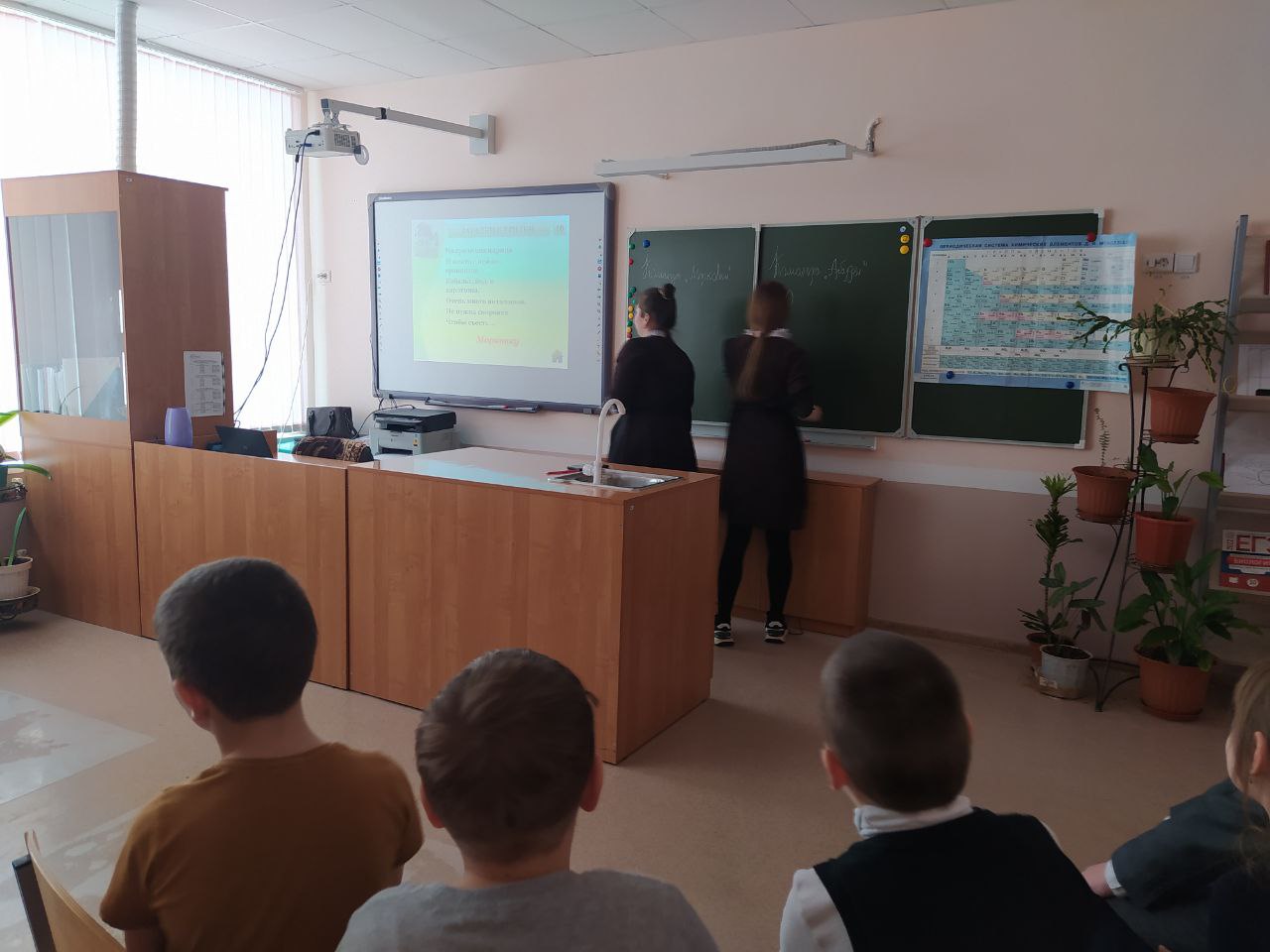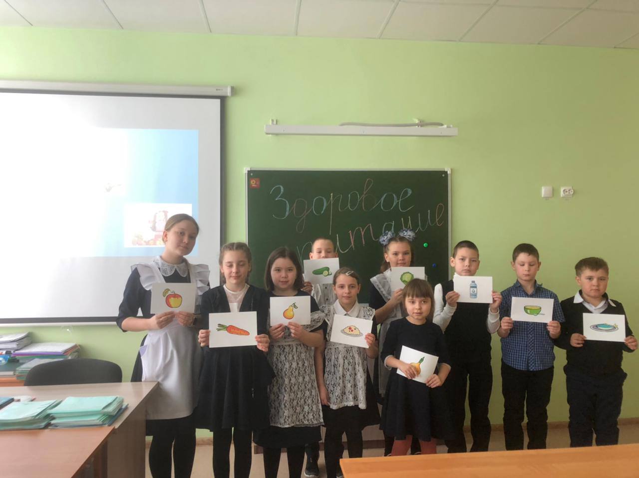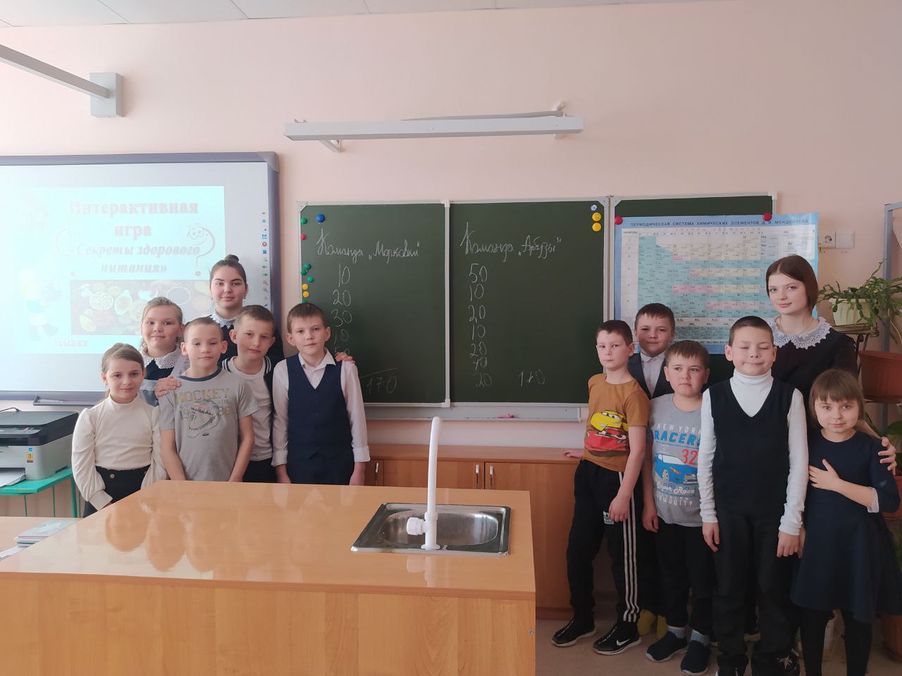 18 марта ученицы 9 класса Аухадиева А. И Яшагина Н. провели для учащихся 3-4 классов интерактивную игру "Секреты здорового питания". На мероприятии ребята узнали о витаминах, о продуктах, в которых они содержатся. Затем учащиеся разделились на 2 команды "Морковки" и "Арбузы". Игра была построена по принципу телевизионной передачи "Своя игра". Участники отвечали на вопросы из разных категорий. Игра получилась насыщенной, интересной, любознательной. В итоге победила дружба! Обе команды набрали по 170 очков.