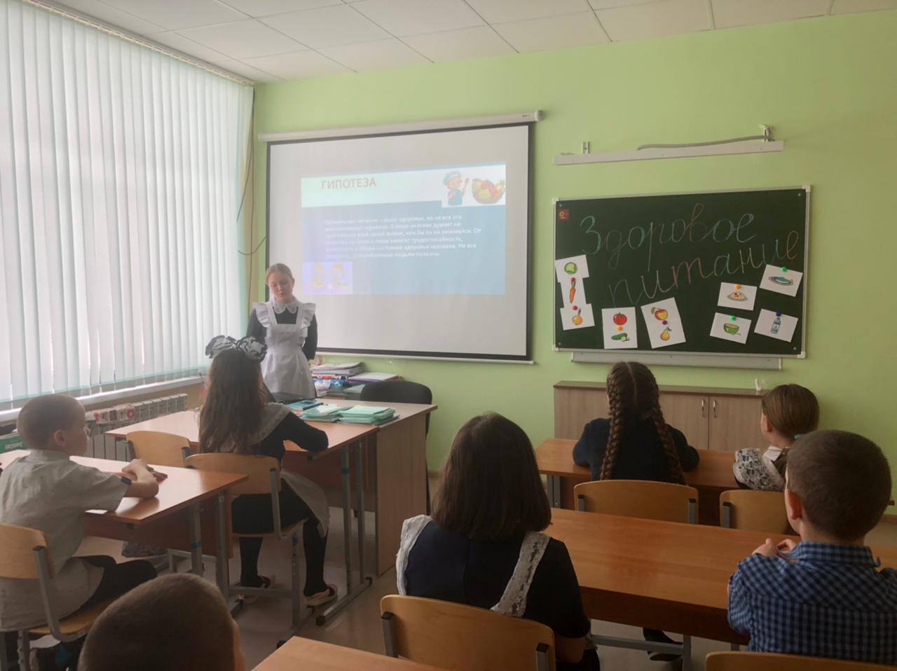 Здоровое питание- это такое питание, которое обеспечивает рост, оптимальное развитие, полноценную жизнедеятельность, способствует укреплению здоровья и профилактике неинфекционных заболеваний. Сегодня учащиеся 8 класса провели мероприятие с учениками 1-2 классов «Здоровое питание-залог здоровья».Цель мероприятия:-дать представление о роли питания в обеспечении жизни;- определить режим питания школьника;- дать оценку некоторым пищевым продуктам;- уточнить требования к питанию растущего организма.Пришли к выводу:-в питании все должно быть в меру;-пища должна быть разнообразной;-есть фрукты;-тщательно пережёвывать пищу;-не есть всухомятку;-не перекусывать чипсами и сухариками;- не есть перед сном;-обязательно брать в школе горячий обед.