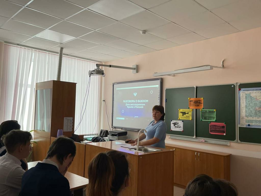 20 марта в 8-9 классах прошло занятие курса внеурочной деятельности «Разговоры о важном» на тему «День воссоединения Крыма с Россией». Обучающиеся узнали об исторических событиях, связанных с воссоединением русского Крыма с Россией. Обсуждались причины и значение воссоединения России и Крыма, понятие «Русская весна». Небольшой исторический экскурс показал ребятам, что Крым – это исконно русская территория, олицетворение русской боевой славы и его возвращение – это восстановление исторической справедливости. Обучающиеся также узнали о развитии Крыма за последние 9 лет: масштабном строительстве жилых объектов и инфраструктуры, восстановлении исторических памятников, реконструкции и строительстве в Международном детском центре «Артек» и др. Завершились занятия просмотром видеоролика «Крым в сердце каждого из нас».