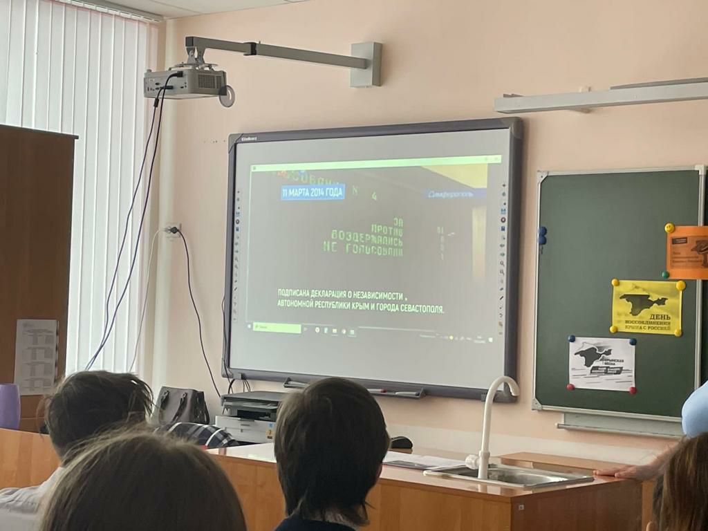 «Разговоры о важном». Тема занятия — «День воссоединения Крыма с Россией». Нашим подписчикам всегда интересно: о чем идет разговор , рассказываем... 18 марта 2014 года Крым вернулся в состав России. На классном часе дети отправились в виртуальное путешествие по полуострову: учитель открыл карту Крыма с нанесенными на нее достопримечательностями: международным аэропортом Симферополь, автомобильной трассой «Таврида» и Крымским мостом. Крым — это уникальный полуостров, где собраны самые удивительные вещи: «многоцветие культур», «все климатические зоны», «многонациональность». На интерактивной карте Крыма изображены города, находящиеся на полуострове (Севастополь, Симферополь, Ялта, Феодосия, Керчь, Евпатория), и международный детский центр «Артек»