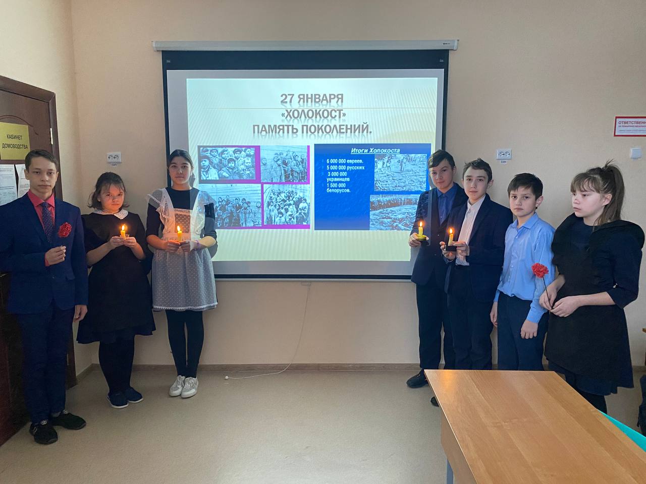 В 8-9 классах прошел классный час "Пока мы помним -мы живы", посвященный Международному дню памяти жертв холокоста. На мероприятии ребята узнали об истории памятной даты, о жертвах национализма в концлагерях. В завершении учащиеся провели акцию "Свеча памяти" и почтили всех погибших минутой молчания.