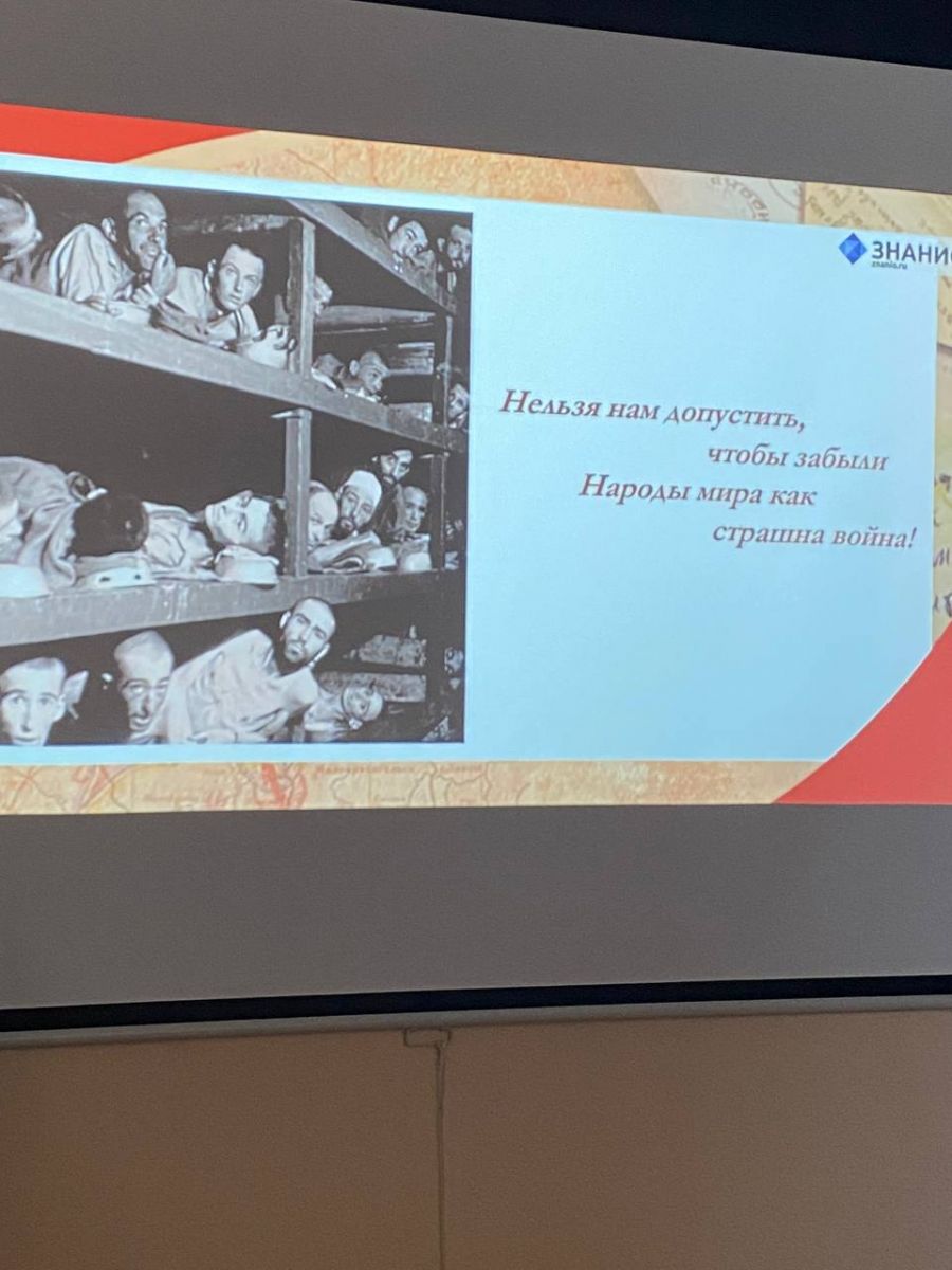 27 января - «Холокост» . Память Поколений. Под таким названием прошел классный час в 6 классе. Целью классного часа было ознакомление учащихся трагедией Холокоста как одним из примеров бесчеловечной политики нацистов; познакомить с историей лагерей Освенцим, Майданек, Дахау и др., как трагической страницей периода Второй мировой Войны.