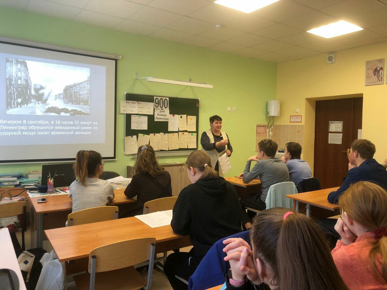 25 января в 8 классе прошел классный час «Блокадный Ленинград». Начался он со звука метронома. Ведь именно в блокадном Ленинграде находилась радиостудия, которая круглосуточно посылала в эфир стук метронома. Эти звуки означали, что Ленинград жив, сердце его бьется, город борется!Ребята ознакомились с кадрами документальной кинохроники, фотографиями той поры. Никого не оставил равнодушным рассказ о мужестве участников обороны и жителей города на Неве. Одним из самых трогательных моментов классного часа стал просмотр дневника ленинградской школьницы Тани Савичевой, у которой сначала погибла вся семья, а потом и она умерла от истощения. В сердцах ребят надолго останутся герои блокадного Ленинграда.